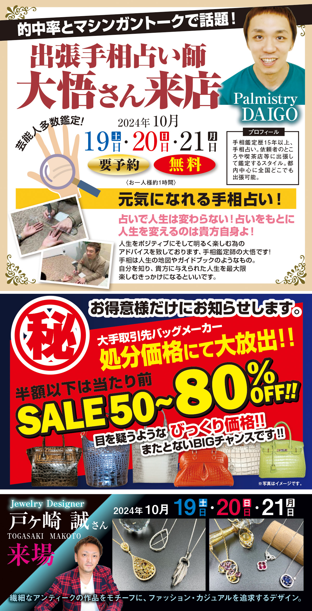 2024/10/4〜7 新作ジュエリー&バッグ大放出フェア